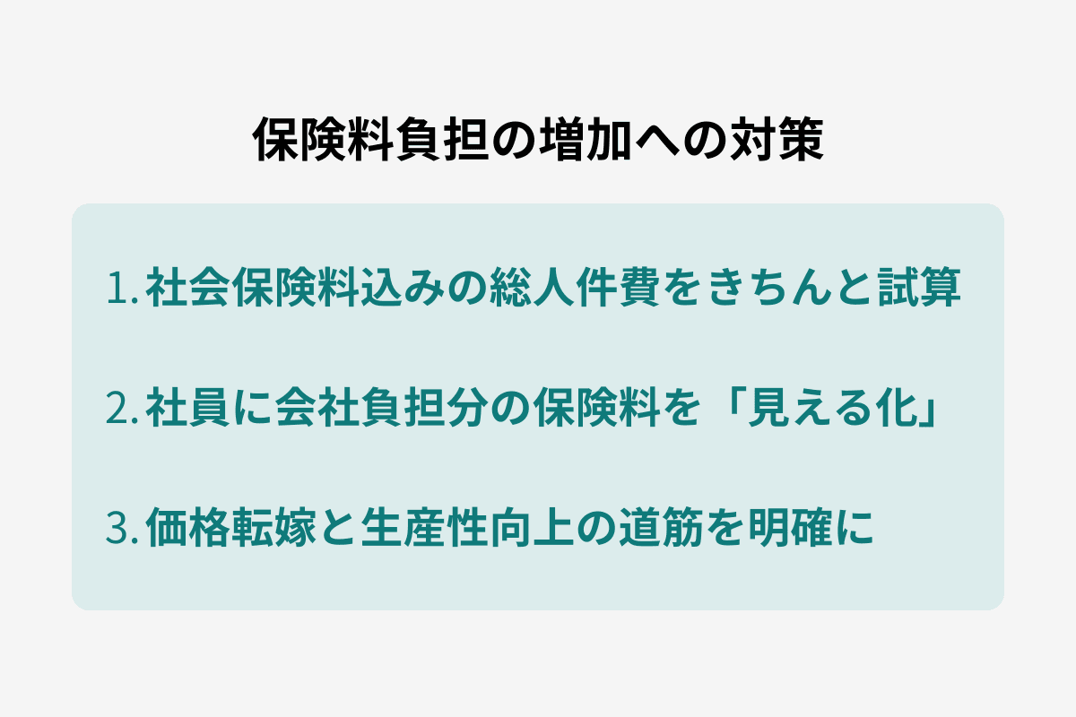 保険料負担が増えることを見越したうえで、企業がとり得る対策として以下の3点を解説します。